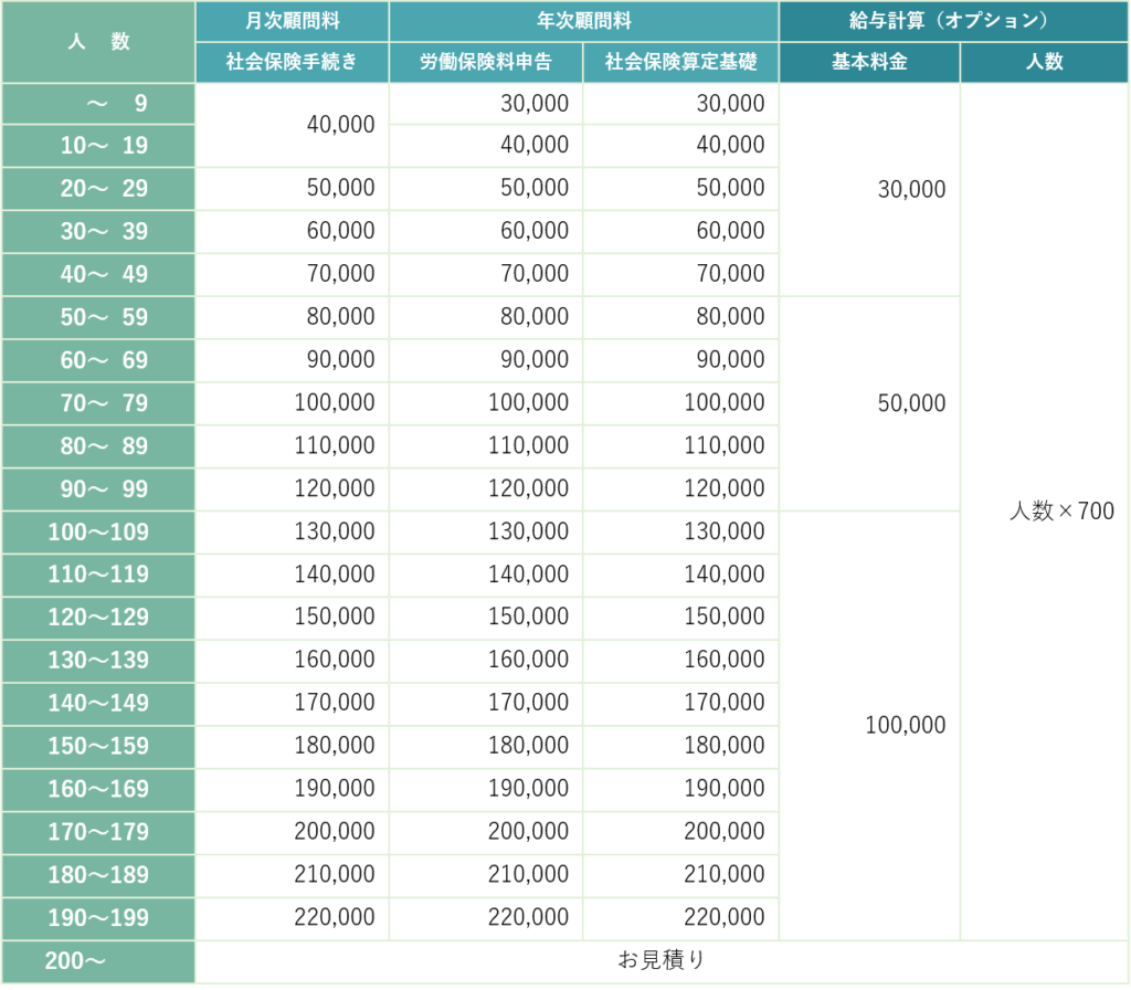 ・給与計算はオプションとなります。給与計算のみの受託は行っておりません。